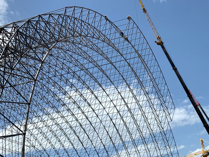 (2)网架加工前应对现场尺寸进行复测,确认无误后方可进行加工、安装;网架制作、运输、安装应遵守《空间网格结构技术规程》JGJ7-2010、《钢网架和龙螺栓球节点》JG/T 10-2009、《钢网架和龙螺栓球节点用高强度螺栓》 GB/T 16939-2016、《和龙钢结构和龙工程和龙施工规范》 GB50755-2012、《和龙钢结构和龙工程和龙施工质量验收标准》 GB50205-2020。
